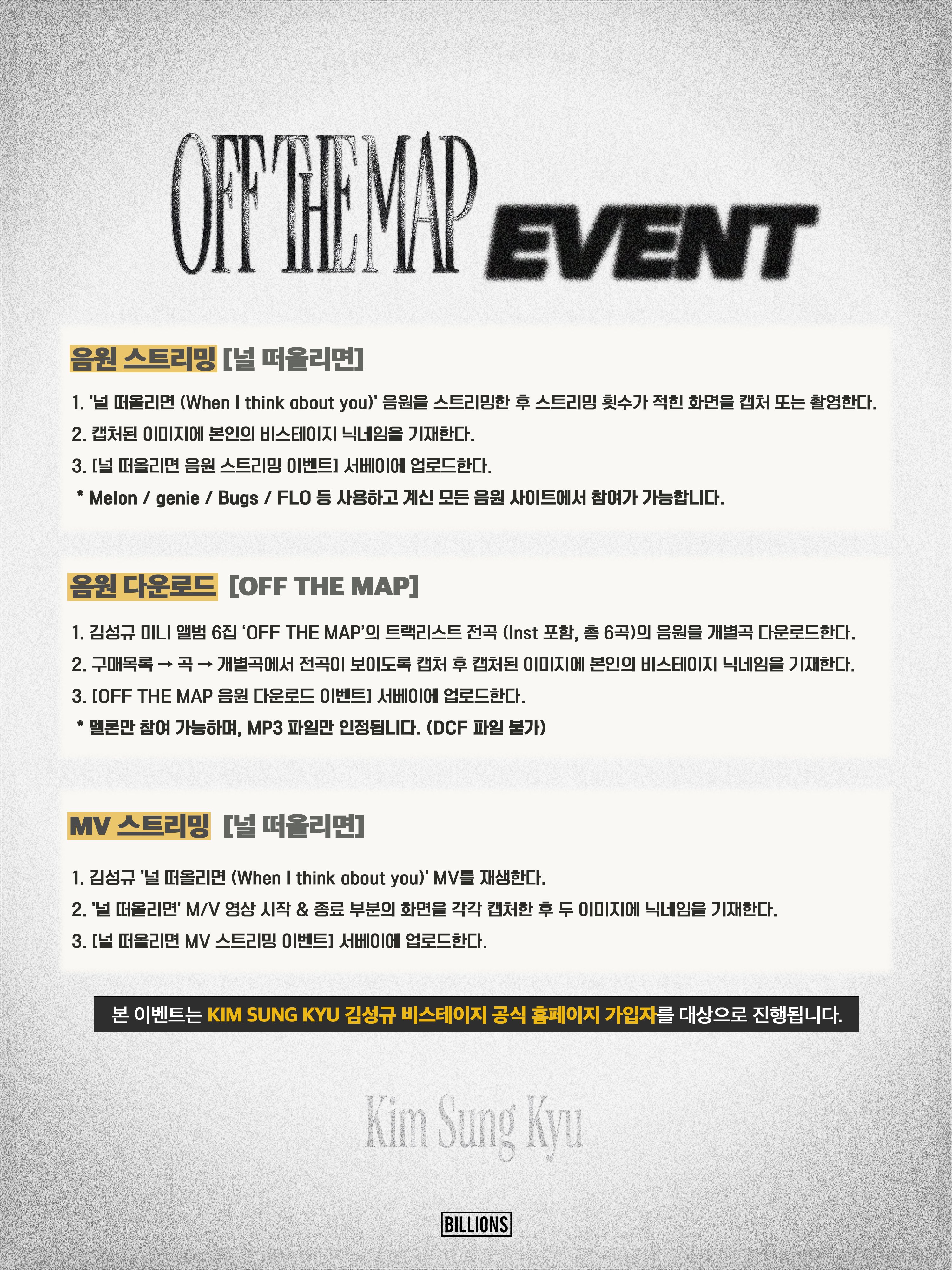 * 본 이벤트는 KIM SUNG KYU 김성규 비스테이지 공식 홈페이지 가입자를 대상으로 진행됩니다.