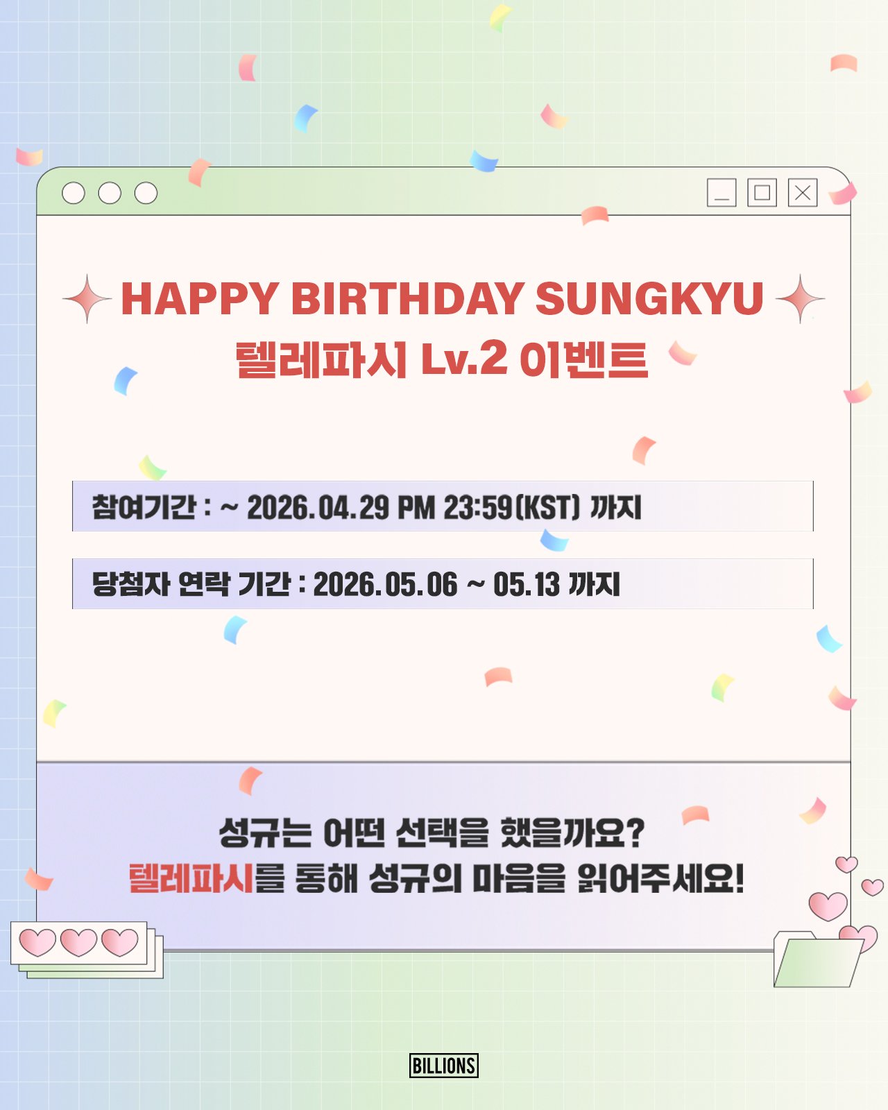 HAPPY BIRTHDAY SUNGKYU 텔레파시 Lv.2 EVENT 안내드립니다.