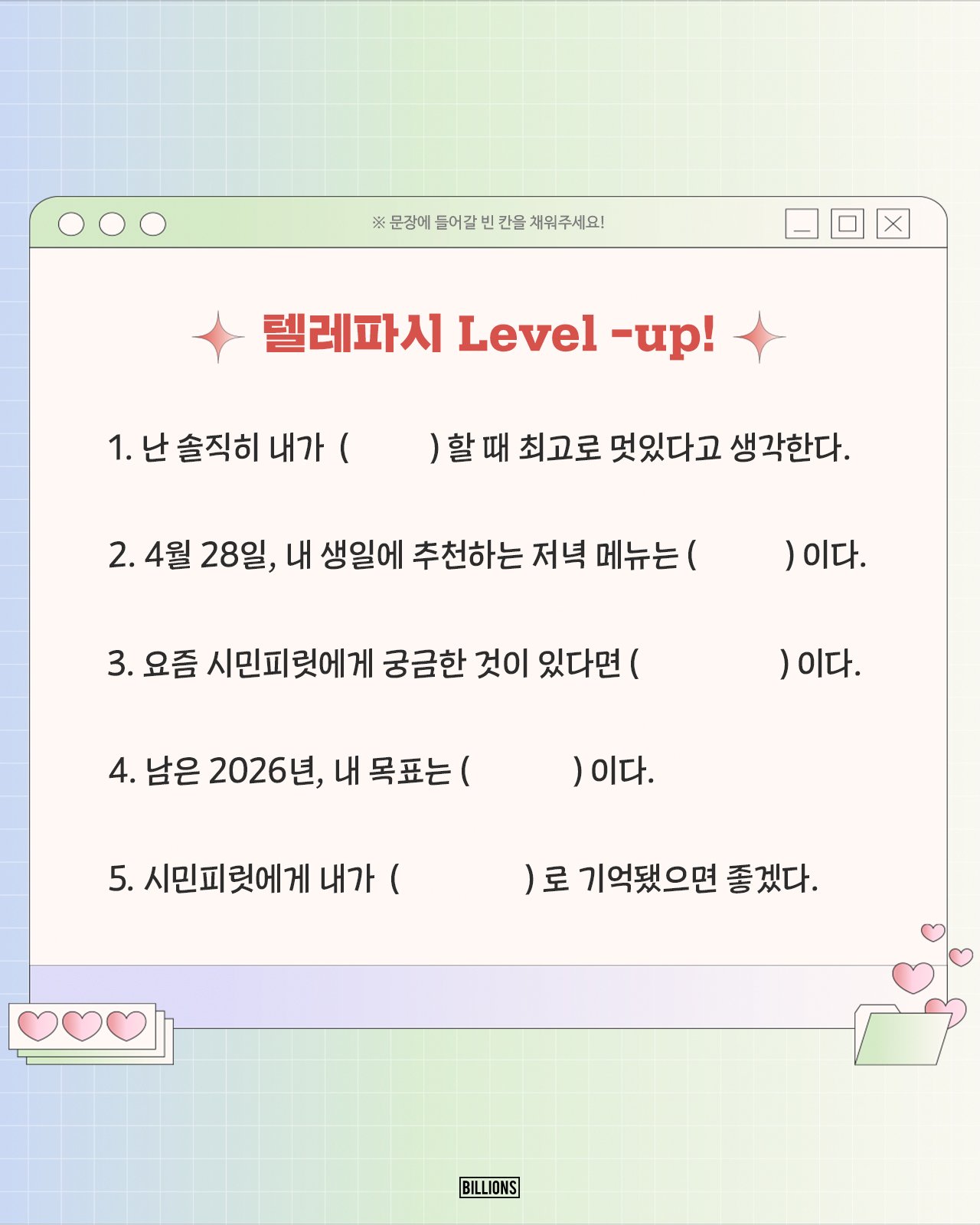 ② 텔레파시 Level-up : 정답을 가장 많이 맞힌 분 혹은 정답과 의미가 가장 유사한 답을 가장 많이 적으신 분 중 랜덤 1명 추첨